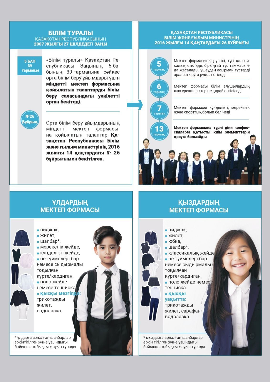 📌 2025–2026 жаңа оқу жылына орай білім алушылардың бірыңғай мектеп формасына қойылатын талаптармен таныс болуларыңызды сұраймыз.